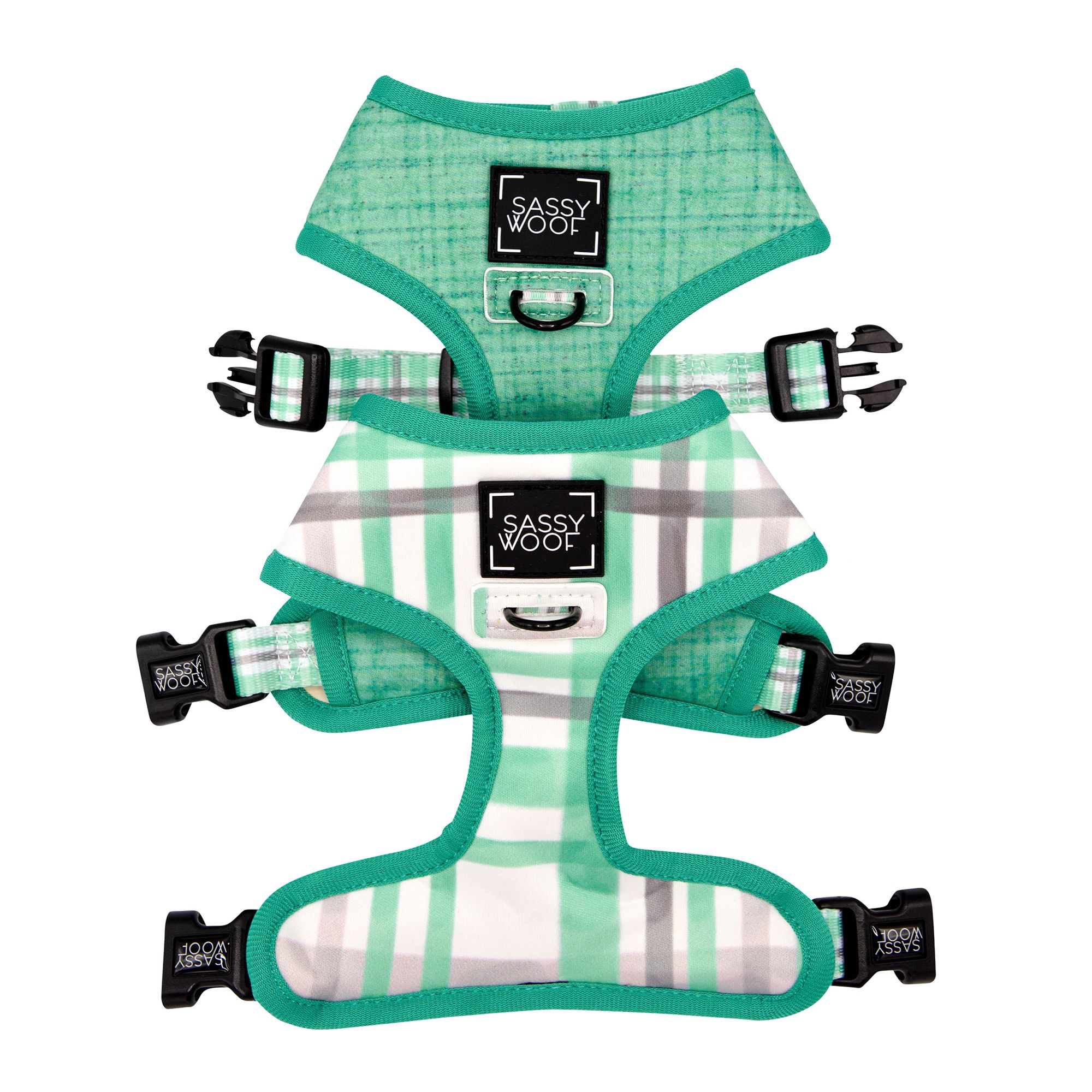 Description: The Sassy Woof Reversible Harness is a comfortable and stylish dog harness for everyday use. This harness has a patented front D–ring, which is convenient for clipping your pups leash to as you adventure together (sold separately). Our harnesses have several sizes to choose from, so you can choose the best fit for your pup! Our harnesses are fully adjustable for the paw–fect fit, and are comfortable, durable, and stylish. Two patterns in one makes this harness versatile and fun! Your best fur–iend will be the most stylish wearing our Sassy Woof Dog Harness! At Sassy Woof, we want to make the time with your dog special because dogs are family. We create modern and high–quality pet products, while keeping your pup stylish and safe. Because all dogs deserve love, we give back to the community by partnering and volunteering with organizations that better the lives of dogs. As a woman–owned and operated small business, we support women entrepreneurship and constantly partner with other small businesses around the world.