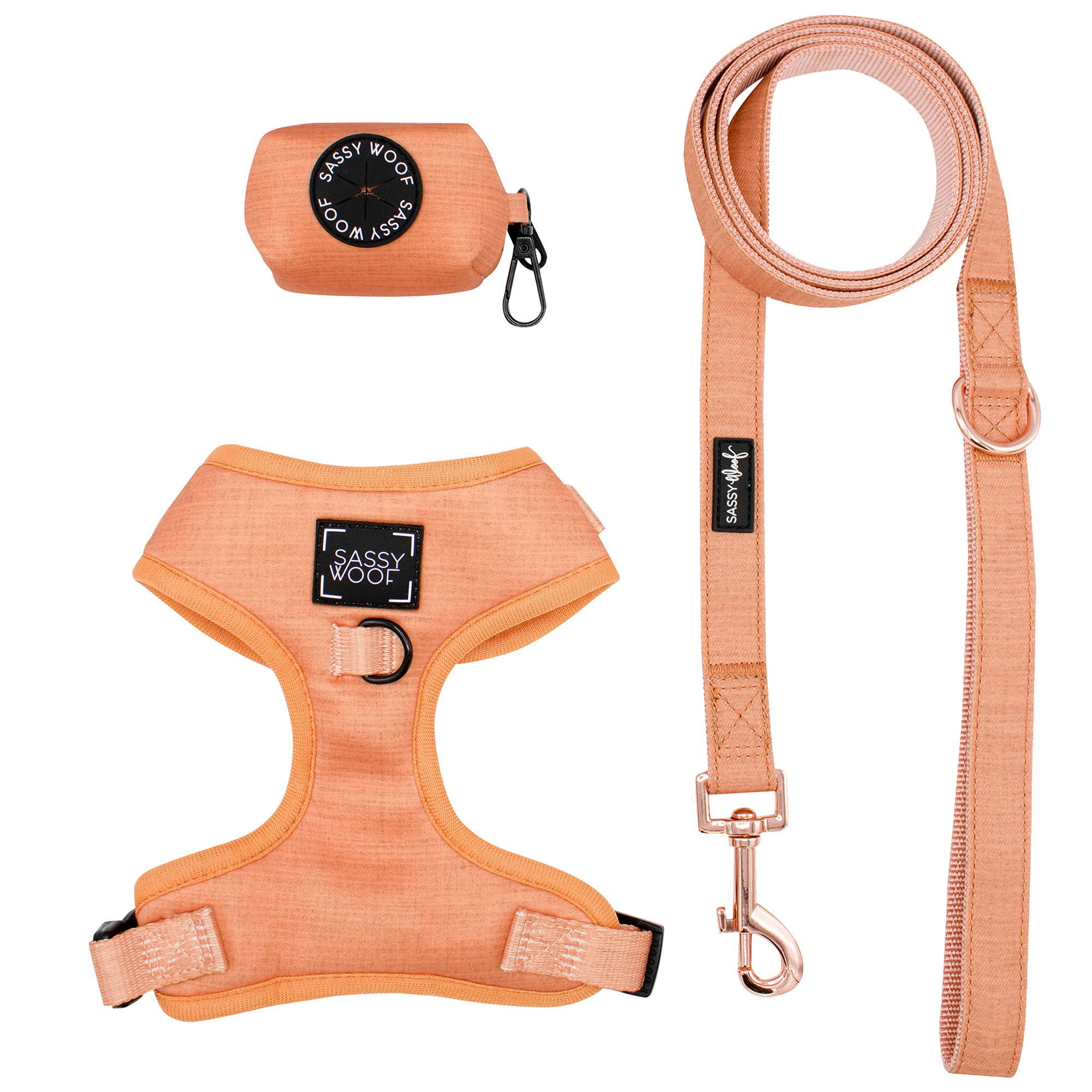 Description: Our Sassy Woof Bundles feature fun, fashionable and functional products. Featuring a reversible harness and leash along with a waste bag holder and one roll of waste bags, you are set fur the best adventure with your pup with everything you need! Our reversible harnesses have multiple sizes to choose from, so you can choose the one that best fits your pup. Our harnesses are fully adjustable for the paw–fect fit, and are comfortable, durable, and stylish. Two patterns in one makes this bundle versatile and fun! Your best fur–iend will be the most stylish wearing our Sassy Woof collection! At Sassy Woof, we want to make the time with your dog special because dogs are family. We create modern and high–quality pet products, while keeping your pup stylish and safe. Because all dogs deserve love, we give back to the community by partnering and volunteering with organizations that better the lives of dogs. As a woman–owned and operated small business, we support women entrepreneurship and constantly partner with other small businesses around the world.