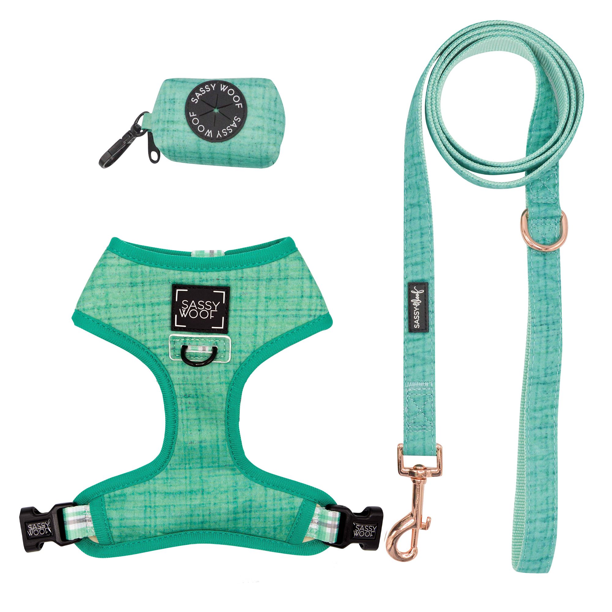 Description: Our Sassy Woof Bundles feature fun, fashionable and functional products. Featuring a reversible harness and leash along with a waste bag holder and one roll of waste bags, you are set fur the best adventure with your pup with everything you need! Our reversible harnesses have multiple sizes to choose from, so you can choose the one that best fits your pup. Our harnesses are fully adjustable for the paw–fect fit, and are comfortable, durable, and stylish. Two patterns in one makes this bundle versatile and fun! Your best fur–iend will be the most stylish wearing our Sassy Woof collection! At Sassy Woof, we want to make the time with your dog special because dogs are family. We create modern and high–quality pet products, while keeping your pup stylish and safe. Because all dogs deserve love, we give back to the community by partnering and volunteering with organizations that better the lives of dogs. As a woman–owned and operated small business, we support women entrepreneurship and constantly partner with other small businesses around the world.