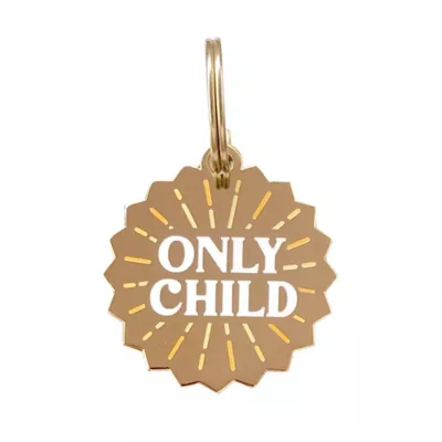 Description: The Only Child pet ID tag is for the pet who gets more attention than they could ever need, as if there's a limit on belly rubs and mommy cuddles. Wearing the Only Child Pet ID tag doesn't only proudly proclaim that your pup is the sole inheritor of your beanie baby and tamagotchi collection. It also serves as a warning. Get another pet and see just how needy I can be. Spoil 'em rotten with the Only Child Pet ID Tag. This brass tag features gold plating so your pup's style is always fresh. Can be customized with up to four lines of text on the backside. Our laser–engraving is guaranteed to last so your pup's way home will never rub off. Engrave ID information with up to 4 lines of text on the backside so your bestie will always find their way back home.