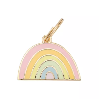 Description: Somewhere over the rainbow, dogs are immaculately dressed. The Rainbow Pet ID Tag is for the dog who will never stop chasing the end of the rainbow. Clouds, pots of gold, or a whole new wardrobe, whatever it is at the end, your dog wants a piece of it. Dare to dream with the Rainbow pet ID tag. This brass tag features gold plating so your pup's style is always fresh. Can be customized with up to four lines of text on the backside. Our laser–engraving is guaranteed to last so your pup's way home will never rub off. Engrave ID information with up to 4 lines of text on the backside so your bestie will always find their way back home.