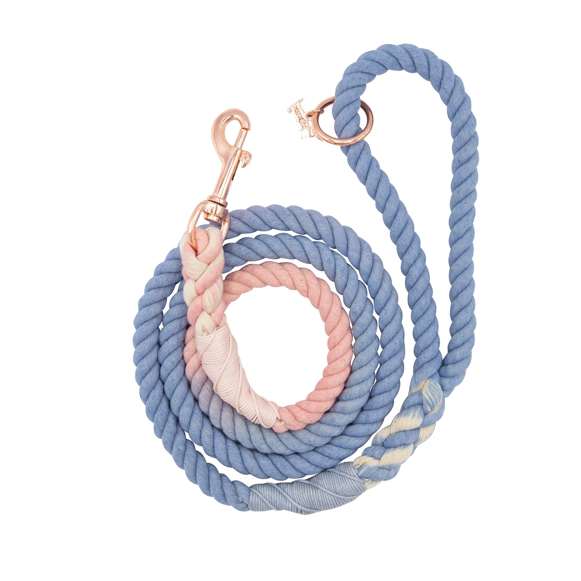 Description: Make walks more enjoyable for both you and your dog with the Sassy Woof Rope Dog Leash. Made with strong, 100% cotton rope and natural dye, this rope leash features a stylish look while offering you the control you desire while on walks with your furry friend. With rose gold accents, our rope leashes are both fashionable and classy. Our Rope Leashes are hand–dyed so there will be slight variations in color which can vary slightly from the color on your monitor screen. Your pup will look paw–some sporting this cute rope leash with luxe rose gold hardware and a matching rose gold dog charm and accessory ring!At Sassy Woof, we want to make the time with your dog special because dogs are family. We create modern and high–quality pet products, while keeping your pup stylish and safe. Because all dogs deserve love, we give back to the community by partnering and volunteering with organizations that better the lives of dogs. As a woman–owned andoperated small business, we support women entrepreneurship and constantly partner with other small business.