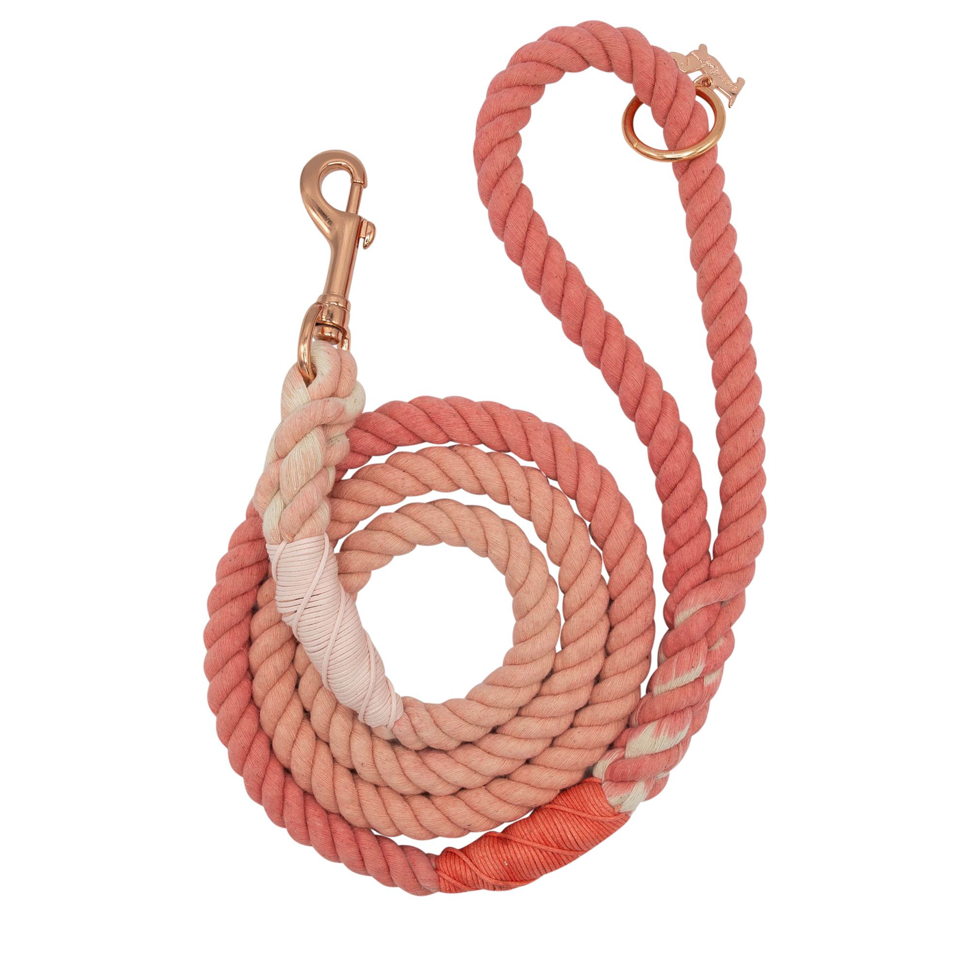 Description: Make walks more enjoyable for both you and your dog with the Sassy Woof Rope Dog Leash. Made with strong, 100% cotton rope and natural dye, this rope leash features a stylish look while offering you the control you desire while on walks with your furry friend. With rose gold accents, our rope leashes are both fashionable and classy. Our Rope Leashes are hand–dyed so there will be slight variations in color which can vary slightly from the color on your monitor screen. Your pup will look paw–some sporting this cute rope leash with luxe rose gold hardware and a matching rose gold dog charm and accessory ring! At Sassy Woof, we want to make the time with your dog special because dogs are family. We create modern and high–quality pet products, while keeping your pup stylish and safe. Because all dogs deserve love, we give back to the community by partnering and volunteering with organizations that better the lives of dogs. As a woman–owned and operated small business, we support women entrepreneurship and constantly partner with other small businesses.