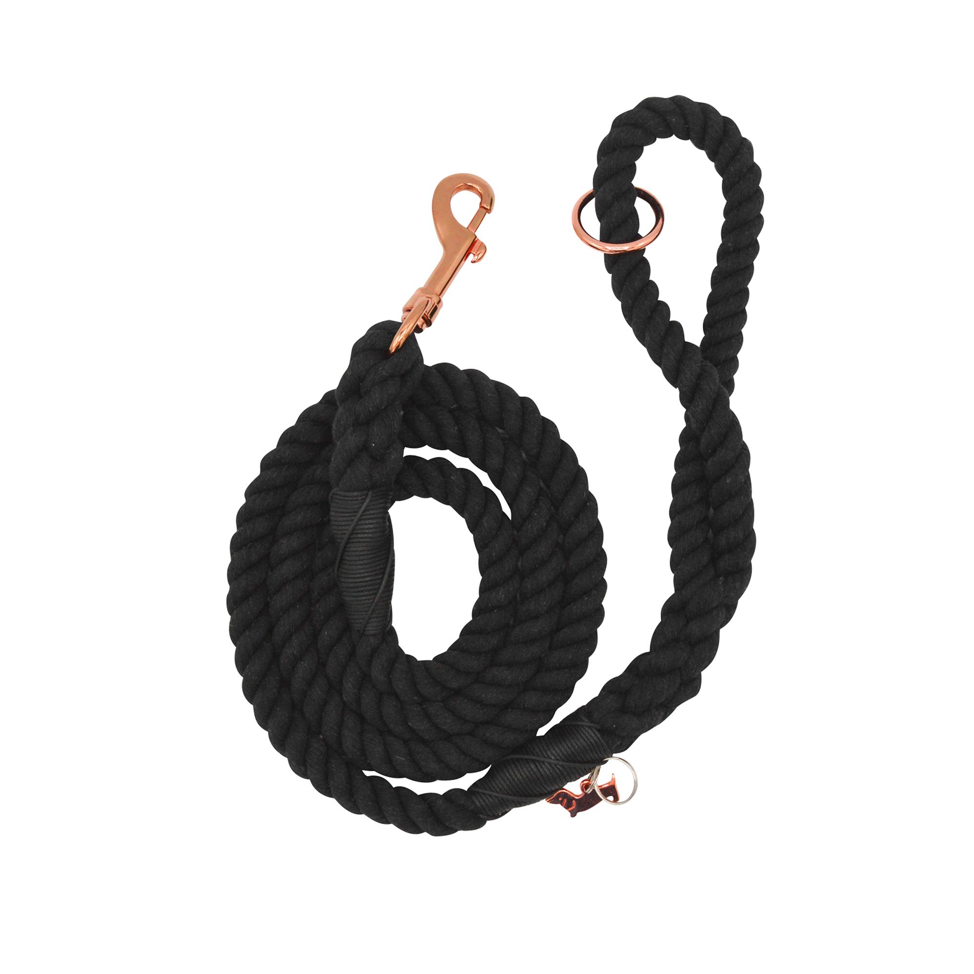 Description: Make walks more enjoyable for both you and your dog with the Sassy Woof Rope Dog Leash. Made with strong, 100% cotton rope and natural dye, this rope leash features a stylish look while offering you the control you desire while on walks with your furry friend. With rose gold accents, our rope leashes are both fashionable and classy. Our Rope Leashes are hand–dyed so there will be slight variations in color which can vary slightly from the color on your monitor screen. Your pup will look paw–some sporting this cute rope leash with luxe rose gold hardware and a matching rose gold dog charm and accessory ring! At Sassy Woof, we want to make the time with your dog special because dogs are family. We create modern and high–quality pet products, while keeping your pup stylish and safe. Because all dogs deserve love, we give back to the community by partnering and volunteering with organizations that better the lives of dogs. As a woman–owned and operated small business, we support women entrepreneurship and constantly partner with other small businesses