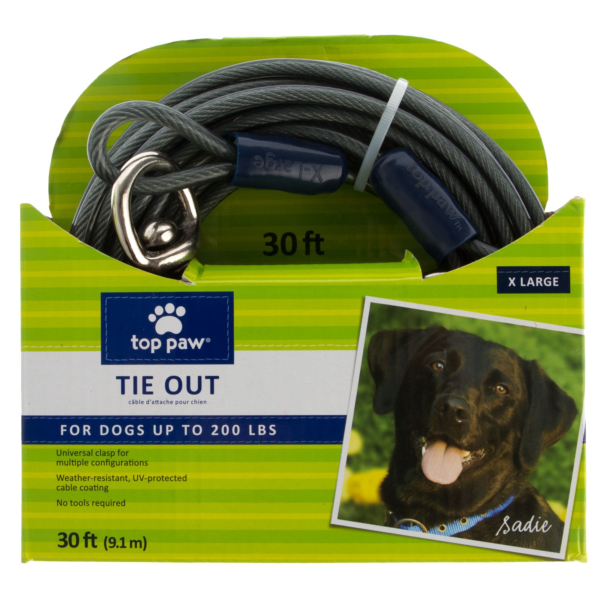 The Top Paw 10 Foot Tie Out is strong and sturdy and will keep your dog safe and contained outdoors. This tie-out allows for multiple configurations, and attaches easily with no tools required. Exclusively at PetSmart.
