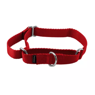 This martingale dog collar keeps your dog safer than ever. Martingale collars are safer than choke chains or prong collars. Used with a leash or with your hand, the martingale collar tightens when your dog pulls and loosens when he stops, so it 's only tight when it needs to be. These collars give you greater control and reduce the risk of your dog slipping out and escaping.