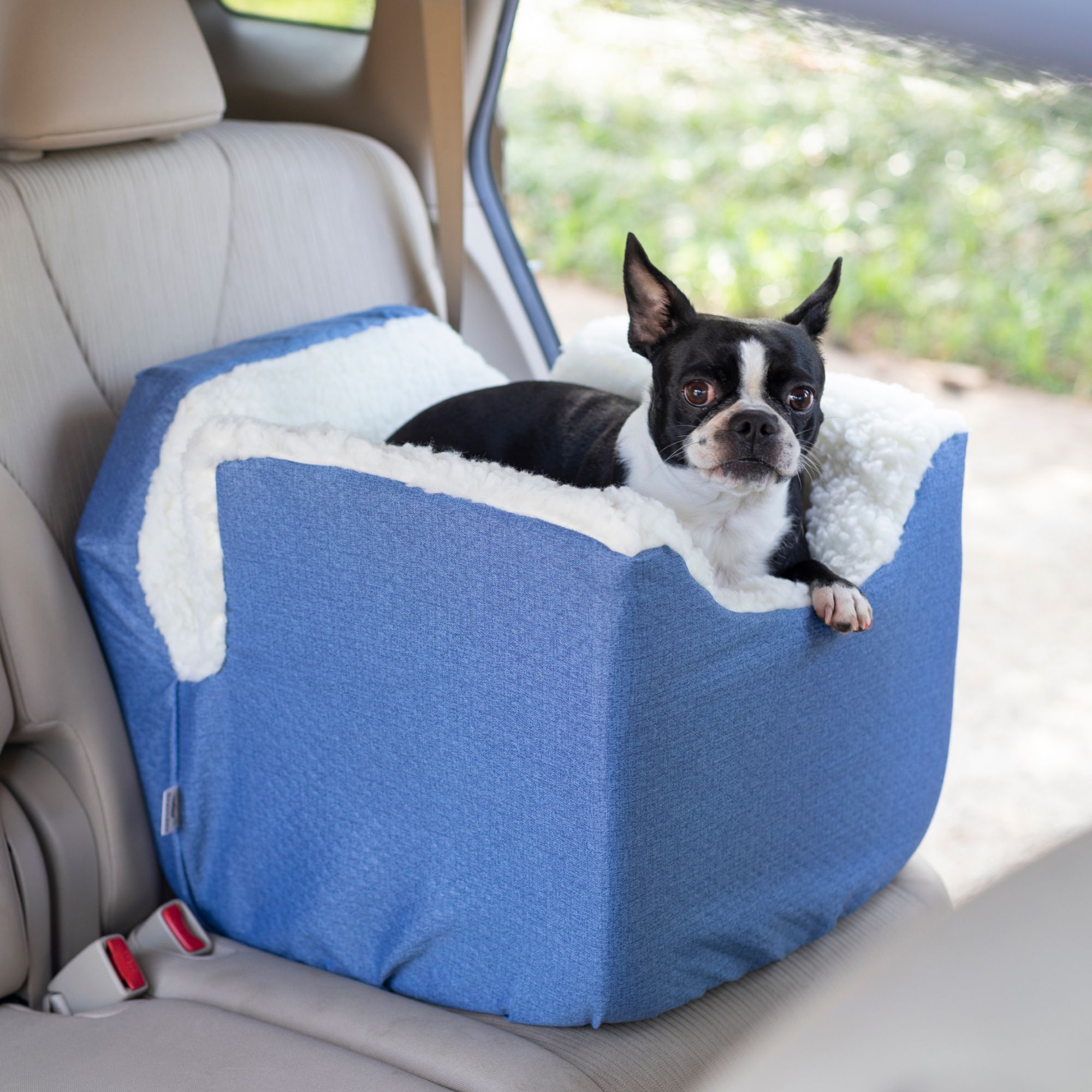 Snoozer introduces new Indoor/Outdoor Fabrics to complement our most popular Console Lookout Dog Car Seats! Dogs love looking out the car window, but many little dogs are too short to see out. Now, with the elevated car seat your small dog can enjoy the view safely and comfortably from the front seat! Safety first: The Lookout elevated dog car booster seat hooks around your car's console to keep it secure, while the internal strap keeps your dog in the Console next to you. In addition, our Console Lookout Car Seats are designed for pets up to 12 pounds, and are perfect for curious dogs who want to watch the world go by. This seat is also ideal for dogs who get car sick or anxious, as seeing out the window can calm anxiety and reduce queasiness. The premium performance fabrics is also water, fade, mildew and UV resistant ensuring these fabrics will stand the test of time. The soft plush sherpa interior lining is sure to provide a comfortable ride foryour furry friend as well. Care: Brush away loose dirt and machine wash cold/air dry for best results. Available in 4 fabric choices and 2 sizes.