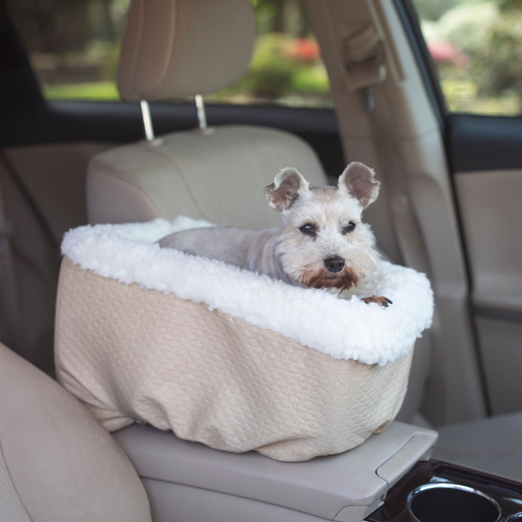 Features: Comfortable foam foam; Luxury microsuede cover with sherpa lined pad; Machine washable cover; Helps alleviate car sickness; Containment strap included; Keeps pets restrained making for a safe ride for all passengers