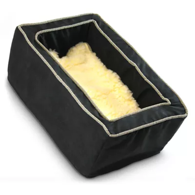 Features: Comfortable foam foam; Luxury microsuede cover with sherpa lined pad; Machine washable cover; Helps alleviate car sickness; Containment strap included; Keeps pets restrained making for a safe ride for all passengers