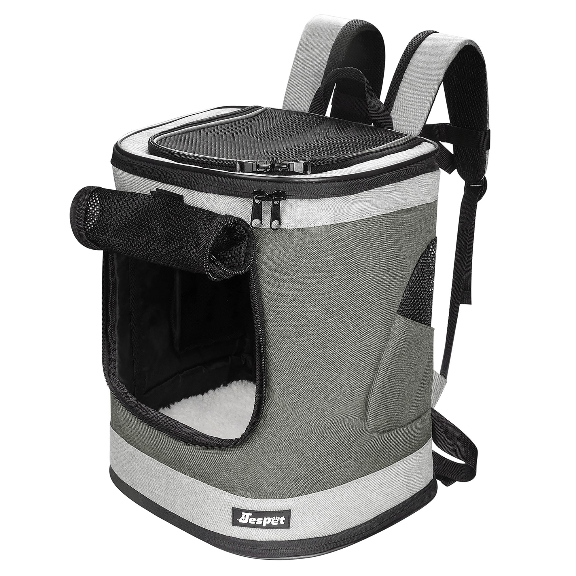 Description: Soft–sided carrier designed to make traveling with your furry friend easier. Made of durable material with a removable pad for your paw–tner to rest on. Holds up to 15 pounds of weight with an adjustable shoulder strap for comfort. Features a safety loop that allows it to be restrained with a vehicle seat belt for car travel. Includes pockets to store treats, collars, leashes or other travel gear.