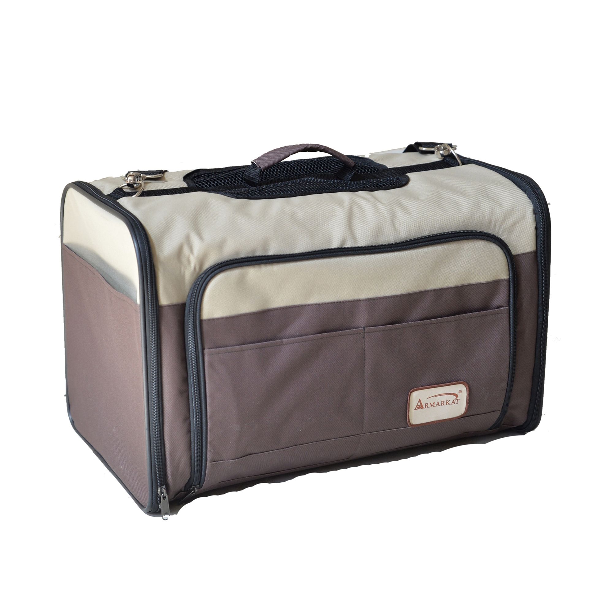 For dogs up to 15 lbs.; Armorsole bottom ; Dual carry handles ; Two side pockets ; Interior tether for safety; Fleece lined tablet sleeve; Removable, washable linerÂ