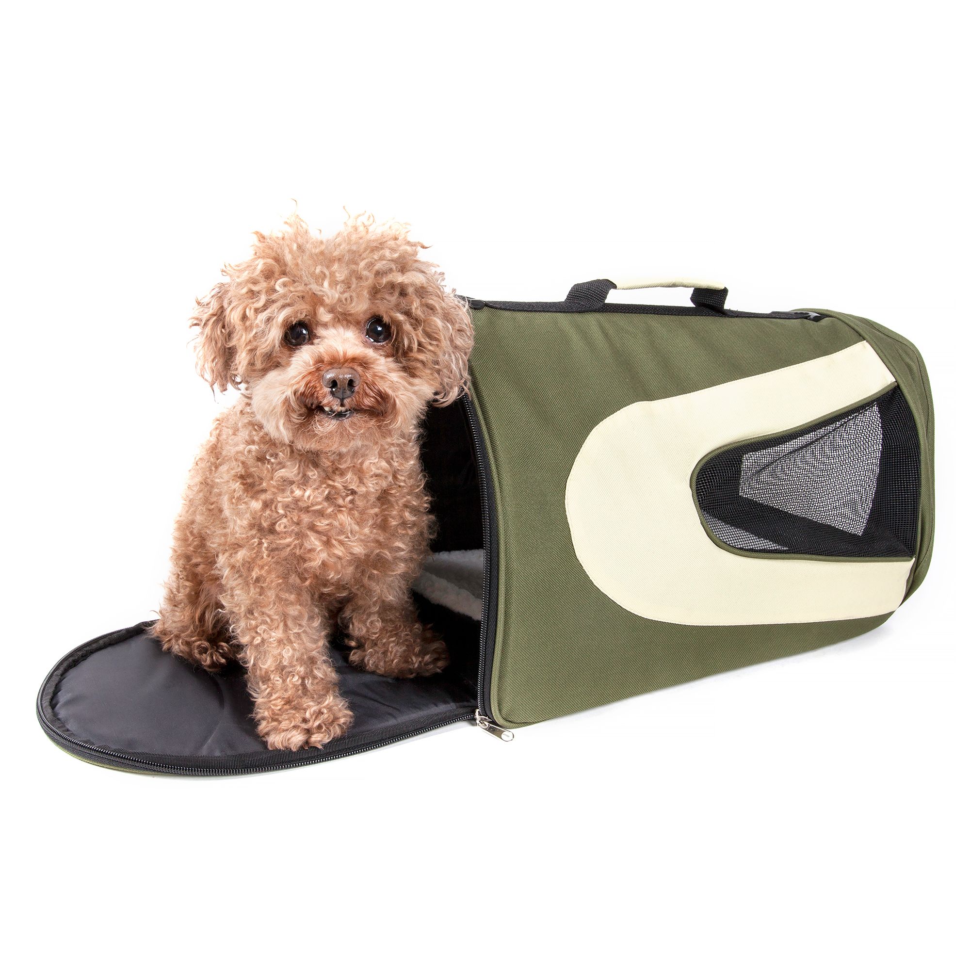 Travel, vet appointments, and other excursion outside the house with your furry friend are easier when they involve this Top Paw Tan Expandable Dog Carrier. This expandable carrier may be carried by the shoulder straps or top handles, holds pets up to 15 lb, and provides space for accessories as well. Only at PetSmart.