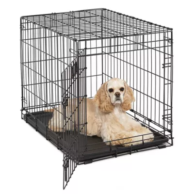Designed to be your dog's home for life, these wire homes come complete with a divider, which allows you to buy the size your dog will need when he's full grown, and adjust it as he grows. This makes crate training easier and more efficient. They're easy to set up and fold down to a portable size, and feature a satin black, electro-coat finish for durability. Rounded corners inside and out add safety for pets and people. Includes an easy-to-clean, ABS plastic pan; closes with secure, slide-bolt latches.