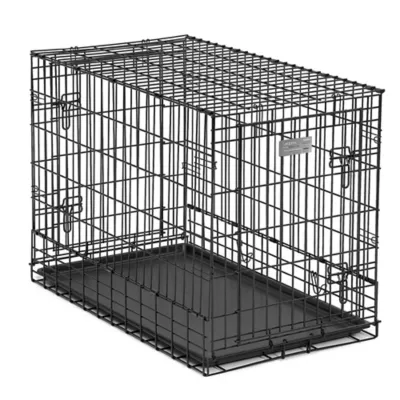 Features: Designed specifically to fit side-by-side in SUV & Van rear compartments. Tough, easy-to-clean ABS plastic pan. Independent pan-stop allows pan removal with door closed. Safe & secure slide bolt latches. Double door for easy access to pets.