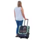 The five-in-one I-GO2 Plus Traveler has telescoping handle with wheels, to function as a rolling case. Can be used as a backpack, tote, carrier, or car seat. Comes with removable plush pad for easy washing, tether to secure animal, and wheel cover. If the pet fits the dimensions of this product comfortably when the product is fully assembled, the product will support the weight of the pet. For small pets only. Read sizing dimensions of product carefully. Made in polyester, mesh & steel.