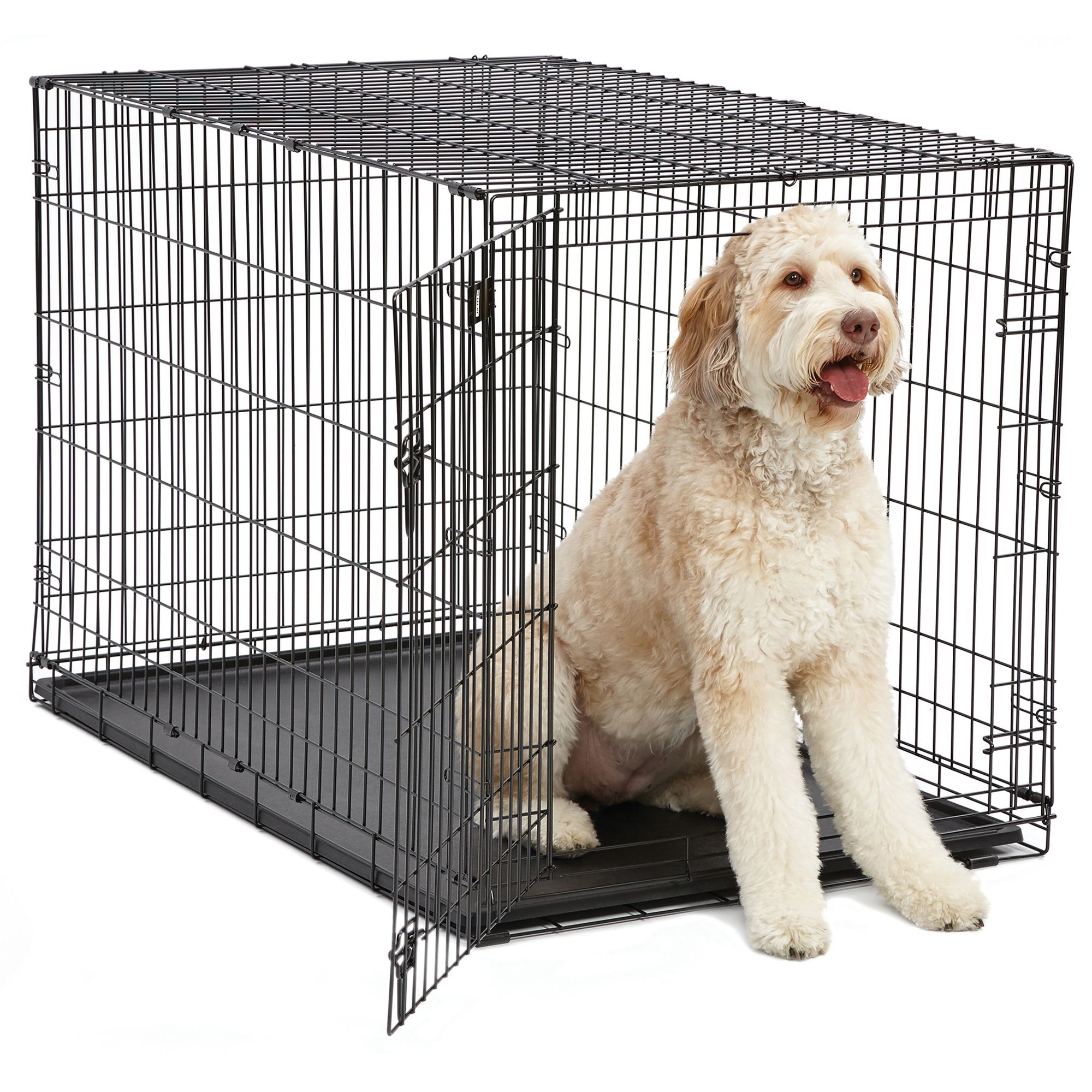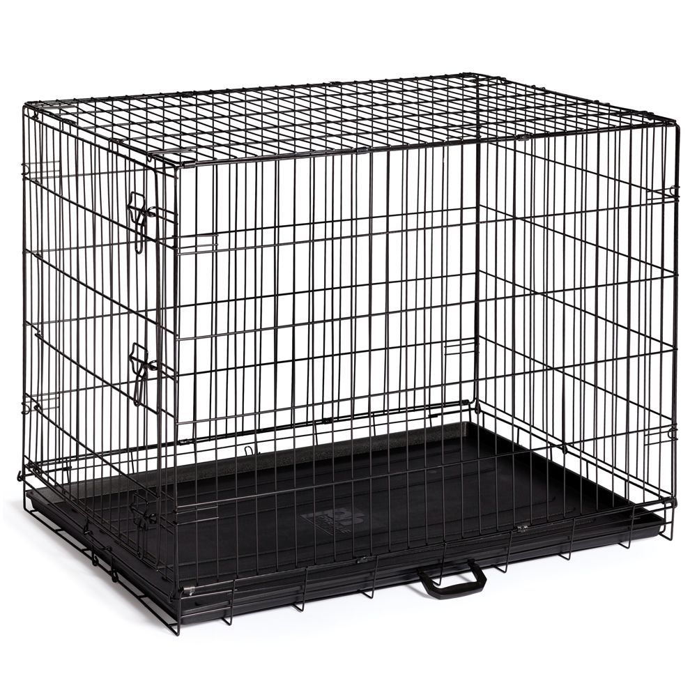 This KONG Ultra-Strong Two Door Crate is designed for durability and provides a safe and secure environment for your dog through every stage of life. Perfect for training during the early stages of companionship, the crate later transforms into a personal den-like space for your adult dog. The unique, reinforced doors feature angled locking tips and paw blocks on the slide-bolt latches to give added confidence that your dog will be safely contained. Only at PetSmart.