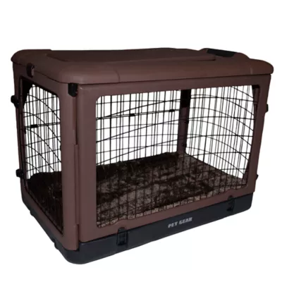 "The Other Door® " Deluxe Steel Crate from Pet Gear features Heavy Duty Blow-Mold Plastic with steel inserts.