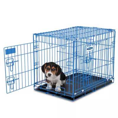 Description: Give your furry friend a cozy and secure space with the 2–Door Puppy Training Retreat Wire Dog Crate. Designed specifically for puppies and small breeds, this 24–inch crate is perfect for training and providing a safe haven for your pet. The vibrant blue color adds a touch of style to your home decor while ensuring your pet feels comfortable and at ease.