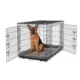 Create a safe and customizable pet home for your dog with the Top Paw® Double-Door Folding Crate. A crate is your pet's home, den, and comfort zone. It's where they can go to find security and to feel safe. We've included a divider panel to allow you to customize the size of the crate space as your dog grows. Additionally, it's a helpful tool in potty training, enabling you to section off a sleep area that your dog will want to instinctively keep clean. Once your dog is fully grown, the divider panel should be removed. Crate mats are sold separately. Exclusively at PetSmart.