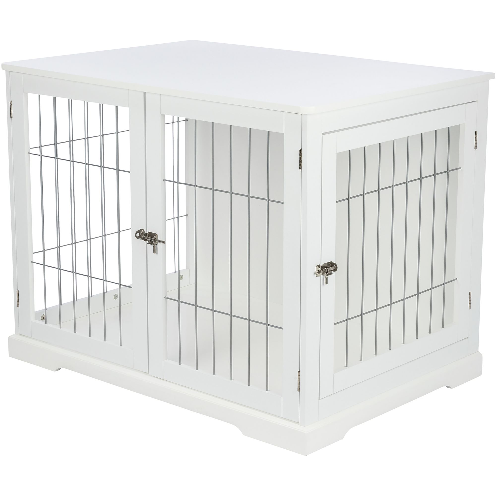 Combining function and style, The TRIXIE Pet Home End Table is a great way to provide your pet with an indoor home that functions as an accent table for the living room, office, or bedroom. The wood and wire design fits a variety of home decors and provides easy visibility to the pet. The back panel is solid to give a sense of security. Features lockable openings on the front or side, which allows flexibility in positioning the pet home. It also includes a moisture-resistant floor.