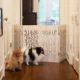 The Cardinal Gates Decorative Freestanding Pet Gate is a unique and modern answer to containing your pet while not having to put any holes into your wall. The gate is shipped ready to use out of the box. No drilling. No assembly. Frustration free! This beautiful wooden gate stands at 30 inches tall and can close off openings up to 50 inches when the panels are angled. The gate stands on its own weight while zig-zagging across your opening. The gate features high-quality, non-skid foam bottoms to enhance stability while protecting your floors. Designed for indoor use only, the Cardinal Gates Decorative Freestanding Pet Gate is available in five different design and color combos: Aspen Bamboo, Barnwood Branches, Gray Geometric, Walnut Vines, and White Starburst.