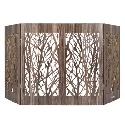 The Cardinal Gates Decorative Freestanding Pet Gate is a unique and modern answer to containing your pet while not having to put any holes into your wall. The gate is shipped ready to use out of the box. No drilling. No assembly. Frustration free! This beautiful wooden gate stands at 30 inches tall and can close off openings up to 50 inches when the panels are angled. The gate stands on its own weight while zig-zagging across your opening. The gate features high-quality, non-skid foam bottoms to enhance stability while protecting your floors. Designed for indoor use only, the Cardinal Gates Decorative Freestanding Pet Gate is available in five different design and color combos: Aspen Bamboo, Barnwood Branches, Gray Geometric, Walnut Vines, and White Starburst.