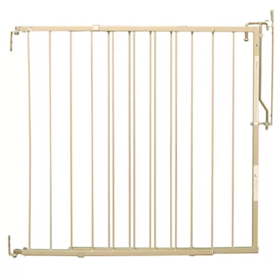 Quick and easy installation at any angle; 29.5 in Height, 26.5 in - 41.5 in adjustable width, 12 lbs., 2.5 in bar spacingAll-metal construction means this gate is chew-proofHardware mounted for maximum strength; hardware included