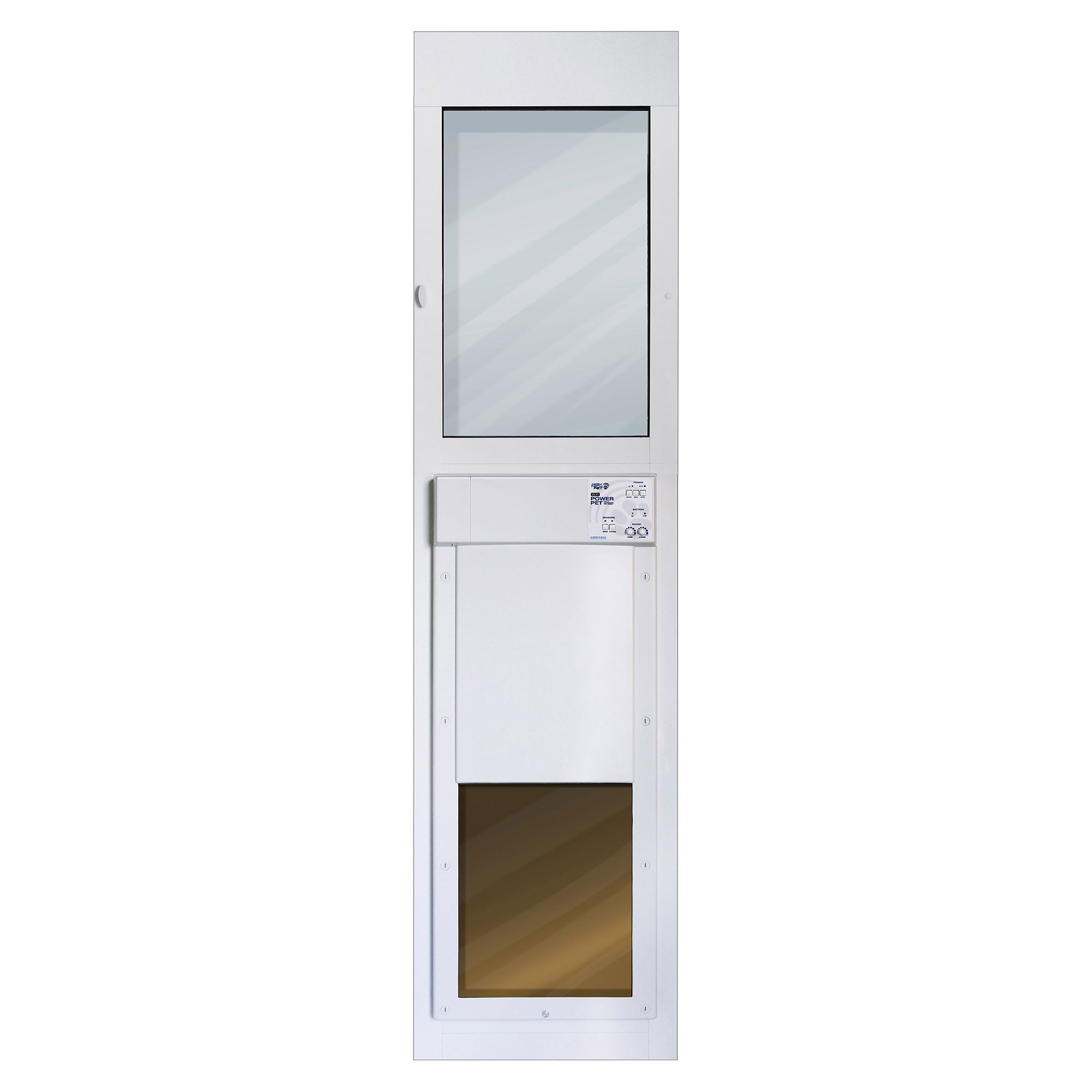 Give your furry friend some freedom while keeping all others out with the High Tech Pet Products Large Power Automatic Sliding Glass Pet Patio Door. It features a fully automatic power pet door mounted in an energy-efficient dual pane for your paw-tner to pass through. An included MS-5 collar gives your companion access while denying others with an automatic steel deadbolt lock and bulletproof door panel which quickly and quietly disappears into the housing when activated by your pet. The self-contained unit easily fits into your sliding glass patio door track and adjusts with a special spring-loaded top section for simple installation. With weather-stripping, a draft stopper and a sturdy automatic locking system, consider High Tech Pet Products Large Power Automatic Sliding Glass Pet Patio Door as a safe and reliable option for your home.