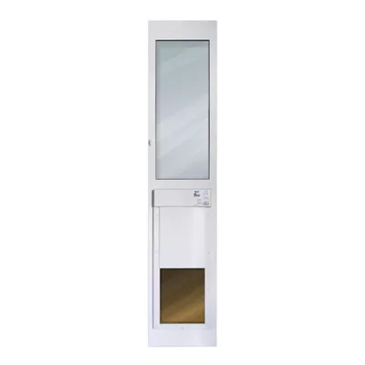 Let your fur-iend in and outside from anywhere in the world with the High Tech Pet Products Wi-Fi Enabled Smartphone Controlled Electronic Patio Dog & Cat Door. As long as you have an internet or cell phone connection, you can open and close the door, activate or deactivate sensors, hold the door open, and set timers to control the exact times your pet is allowed in and out all at the hands of an iOS or Android app. You can also see how many times the door opened and the number of times each sensor was triggered for each day, week, month, or year.