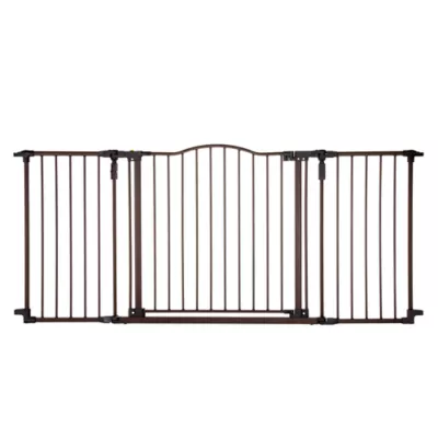 Keep your pet safe and secure in the area of your home you desire with the North States MyPET Extra Wide Windsor Arch Pet Gate. This gate offers security and style for extra wide openings from 38.3-72 inch wide. This gate hardware mounts on Straight or Angled Walls up to 6-foot wide.