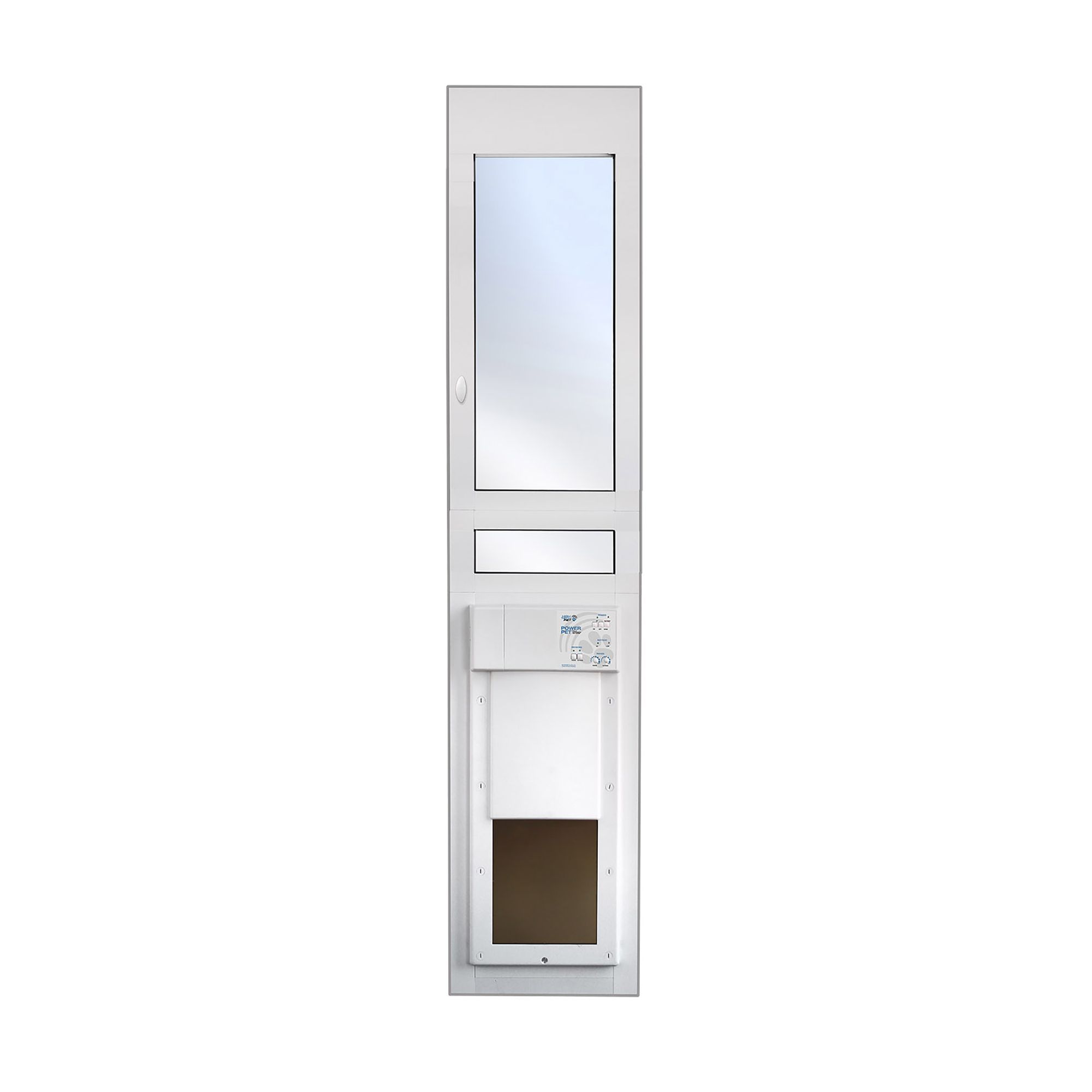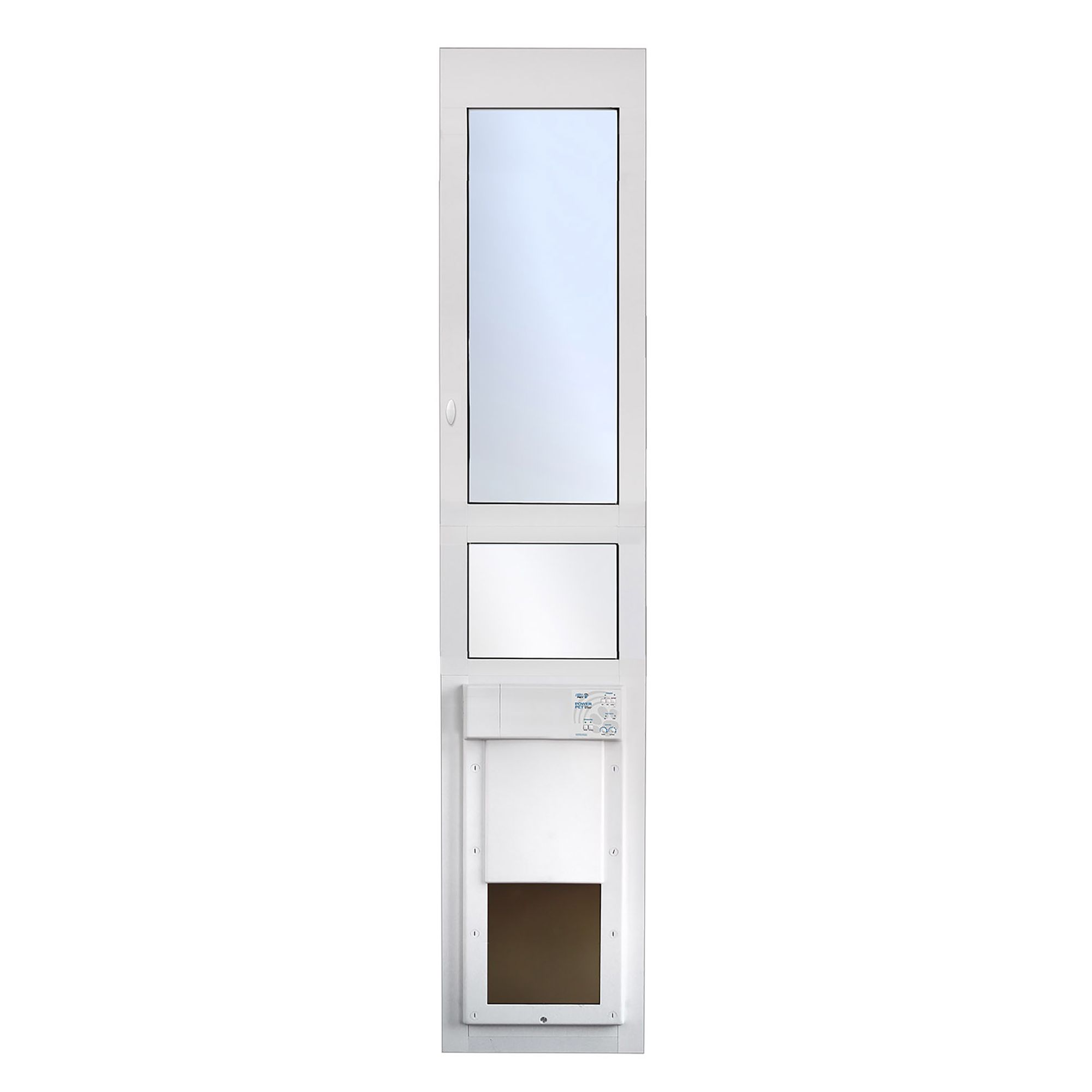 DESCRIPTION This PetSafe Freedom patio Panel Flat White Pet Door conveniently installs in minutes into your sliding glass doors. This pet door is fully insulated and easy to install, and provides your pet with easy access in and out as he desires.