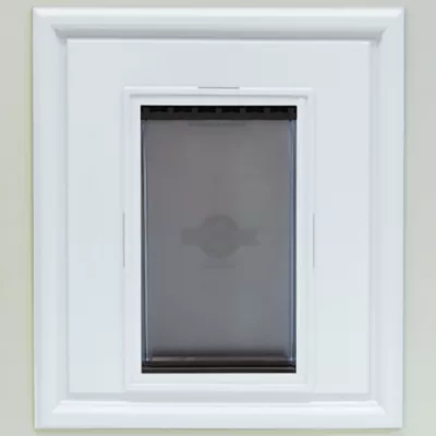 The PetSafe innovative Panel Pet Door Insert is the first professionally installed pet door specifically designed to fit panel doors. It takes the guess work and frustration out of a pet door installation. No framing materials required. It is designed to complement most 2 ft. 8 in., 2 ft. 10 in. and 3 ft. 0 in. doors with basic 2-panel, 4-panel or 6-panel designs while protecting the core of the homeowner's door. Flat, metal, fiberglass, wood or glass top doors can be customized with a Panel Pet Door Insert to create a polished and professional look for today's stylish homes. In addition to the raised mold design, it is paint-ready to compliment any door surface and color.