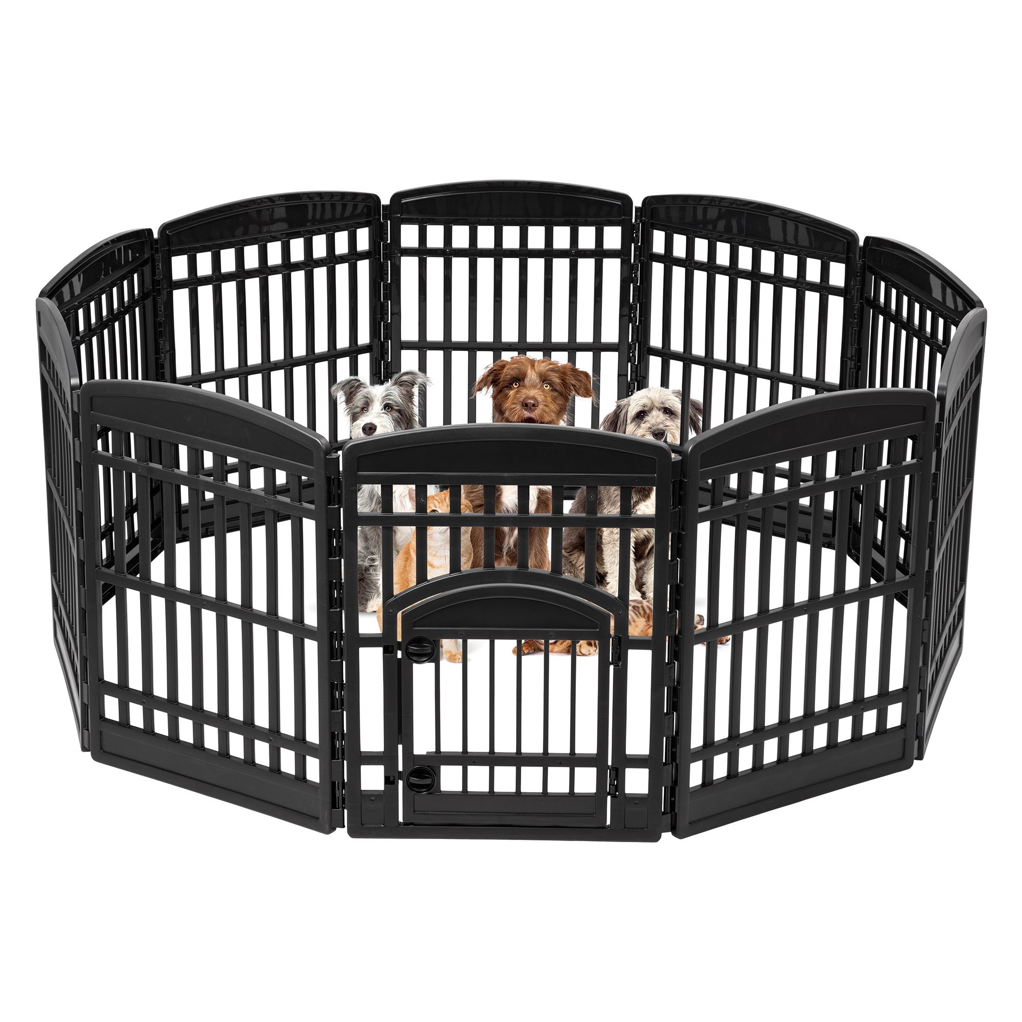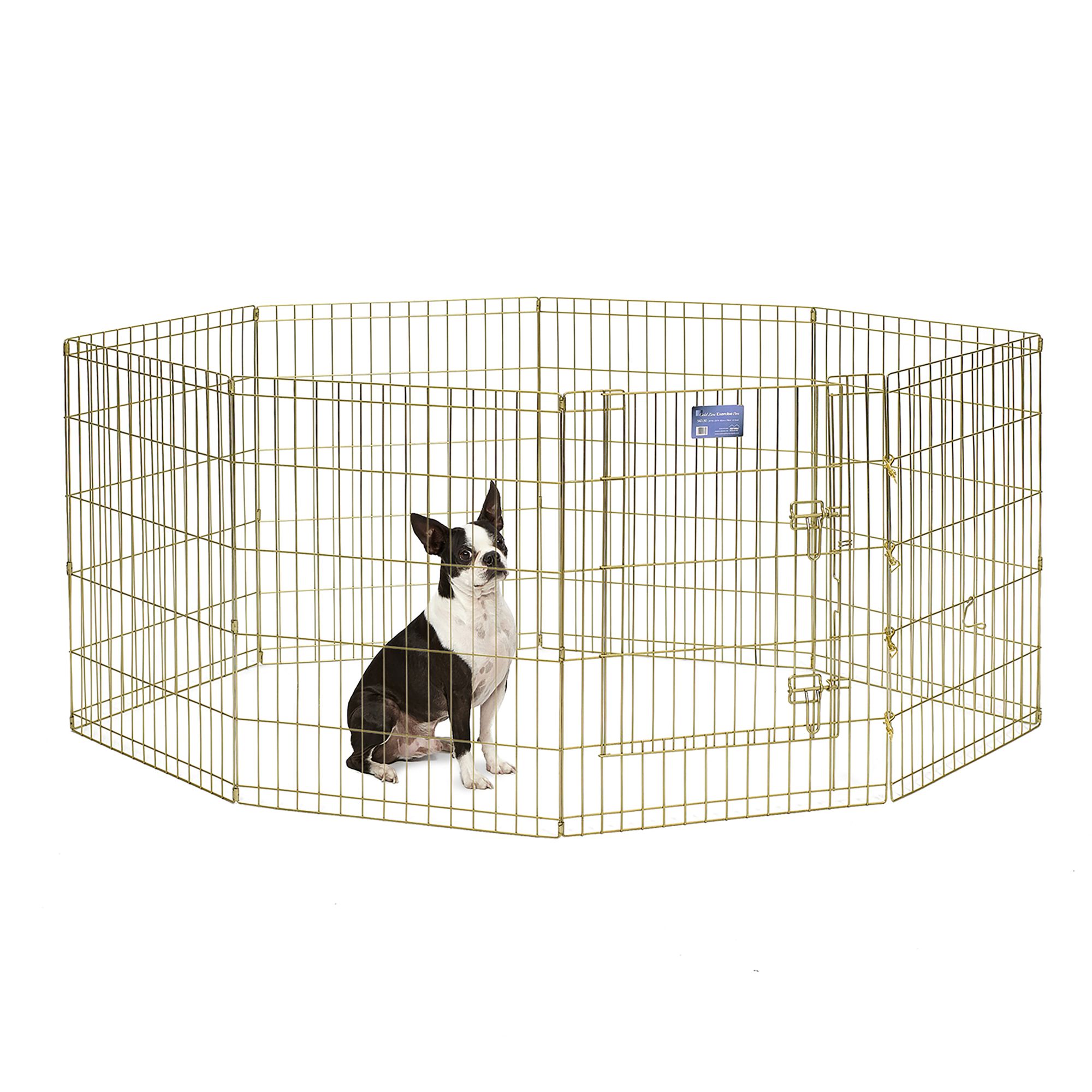 The 24"W x 30"H MidWest Exercise Pen provides a secure 16 sq ft enclosure for your pet. Exercise pens by MidWest are easy to set-up with no tools required. These exercise pens can latch onto the door of a dog crate to provide your pet with the freedom to move and play while adding the security and comfort of their