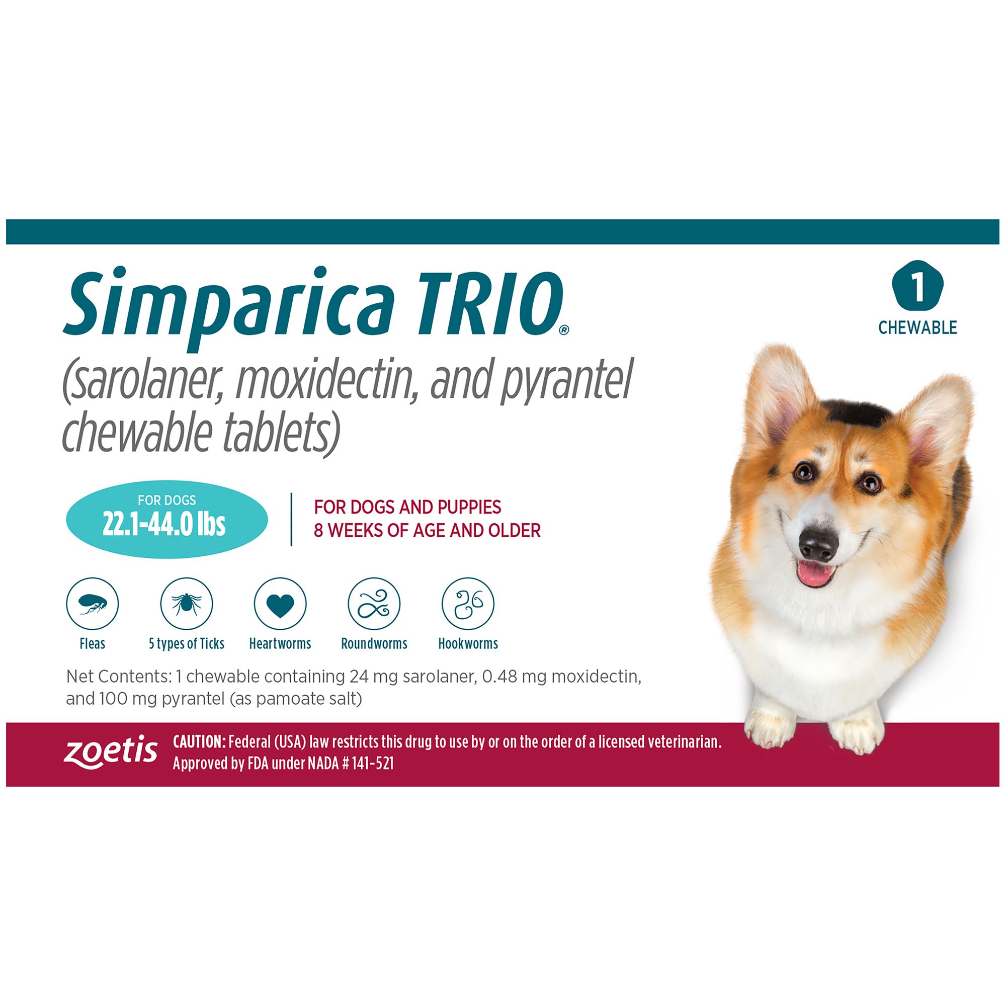Simparica Chewables for Dogs, 22.1-44 lbs - 3 or 6 Month Supply