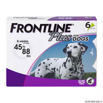 Break the flea life cycle - FRONTLINE Plus for Dogs is specially formulated with fipronil and (S)-methoprene to kill existing adult fleas, flea eggs and flea larvae to guard against further infestations for flea control. Trusted by pet owners for over 20 years**- FRONTLINE Plus for Dogs can be used on puppies as young as eight weeks old, weighing 5 pounds or more, and is easy to apply. Applied to a single point on your pet, the flea and tick control treatment covers your dog's entire body and deposits in the sebaceous glands. These glands act as a reservoir, continuously replenishing the treatment onto your pet, working even if your dog gets wet. Just one dose of FRONTLINE Plus each month protects against fleas & ticks for a full 30 days. FRONTLINE Plus also comes in a formula designed for cats and kittens eight weeks of age and older, 1.5lbs. and over, so you can protect the dogs or cats in your house from fleas and ticks with FRONTLINE Brand Products. Treat all dogs or cats in your household monthly to effectively control fleas and ticks and prevent the establishment of new flea infestations and keep your pets protected year-round.