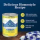 DESCRIPTION BLUE Homestyle Recipe Healthy Weight Adult Wet Dog Food is made with real beef as the first ingredient for flavor dogs love. This grain-free wet dog food also features tasty garden vegetables to give your dog a nutritious meal that tastes like home cooking. And like all Blue Buffalo dog food recipes, this wet dog food contains no chicken (or poultry) by-product meals. It's also free of corn, wheat, and soy. Watch your dog's tail wag when you open a can of Blue Buffalo Homestyle Recipe wet dog food.
