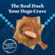 REAL DUCK FIRST: This Blue Buffalo wet dog food topper is made with real, high-quality duck as the first ingredientHIGH-PROTEIN DOG FOOD: These grain-free dog food toppers are packed with protein to satisfy your dog's wild sideFEED TWO WAYS: BLUE Wilderness Toppers make a delicious meal topper or tasty treat between meals HEALTHY, WHOLESOME INGREDIENTS: This wet dog food topper is made with no chicken (or poultry) by-product meals, and no corn, wheat, or soyContains: one (1) 3-oz. pouches of BLUE Wilderness Trail Toppers Wild Cuts Wet Dog Food Topper, Duck Bites ENHANCED IMAGERY: We have enhanced our digital product packaging to highlight our products' ingredients and essential benefits. While the physical packaging will differ slightly, all information is accurate