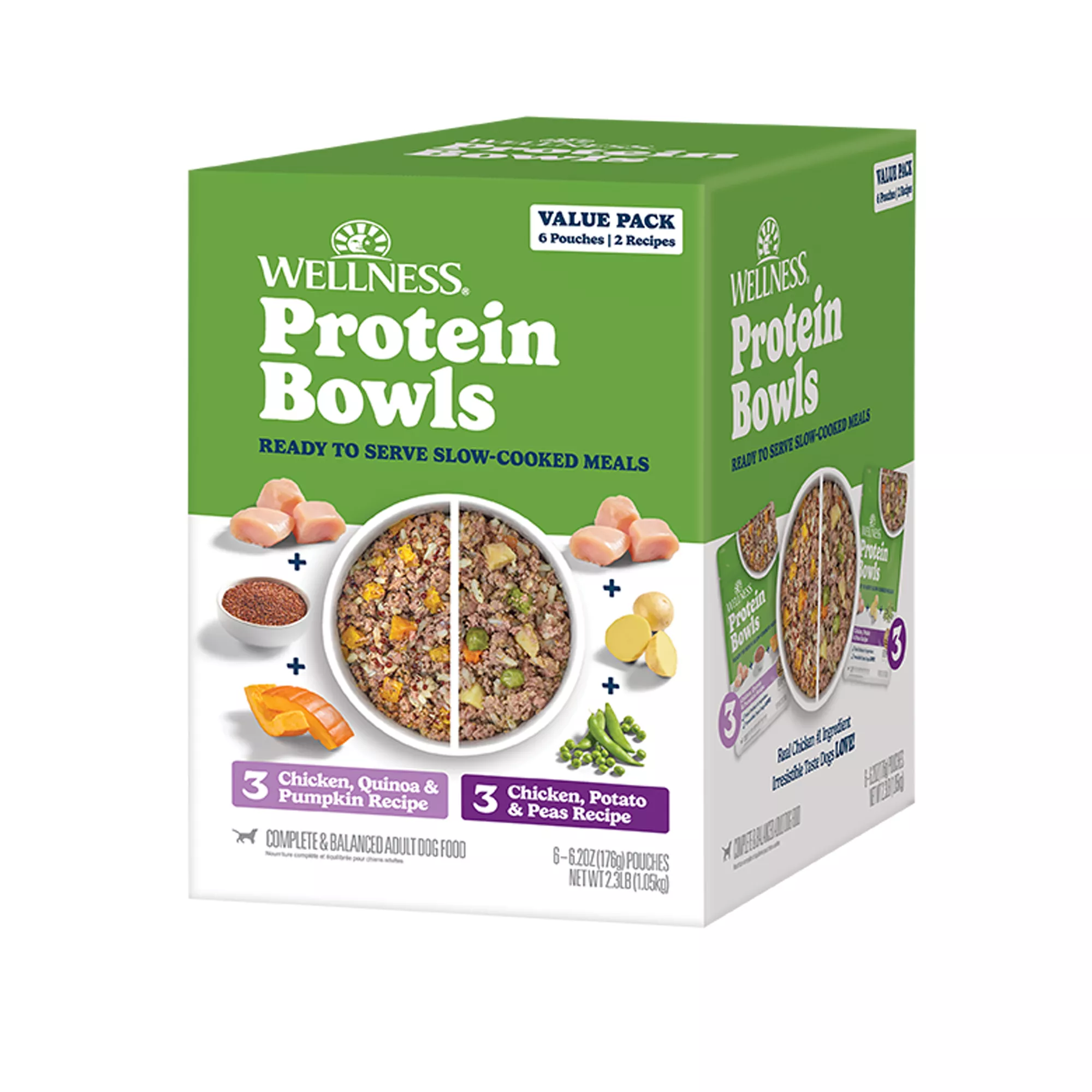 Wellness Protein Bowls Slow-Cooked Adult Wet Dog Food - Variety Pack, Chicken, Quinoa & Potato
