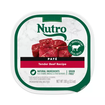 - Contains one (1) 3.5 oz. tray of Nutro Natural Choice Wet Dog Food Pate Tender Beef Recipe.