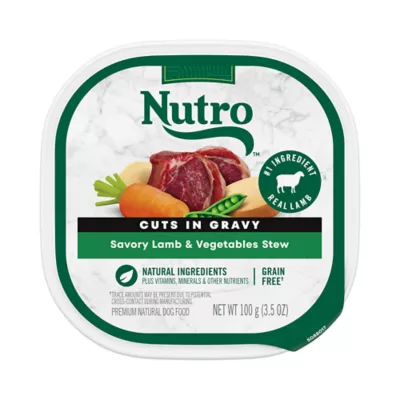 Features & Benefits: #1 Ingredient is Real Protein:This adult wet dog food is made with real lamb as the first ingredient to help your dog get the protein they need. Rich in Nutrients: NUTRO Natural Grain–Free* adult dog food is rich in nutrients and full of flavor (*Trace amounts may be present due to potential cross–contact during manufacturing)Quality Recipe: Made with no chicken by–product meal, corn, wheat, or soy. Made in the USA: Made in USA facilities with trusted farmer and supplier partnerships to source high–quality ingredients from around the world. Let's Grow Healthy Pets: At NUTRO, we believe in growing healthy pets with a range of dog food, cat food, and delicious treats that harness the goodness of nature to help your pets live full and active lives. Contains one (1) 3.5 oz. easy peel tray of NUTRO Adult Natural Grain Free Wet Dog Food Cuts in Gravy Savory Lamb & Vegetables Stew. Partnerships with trusted farmers and suppliers to source high–quality ingredients.