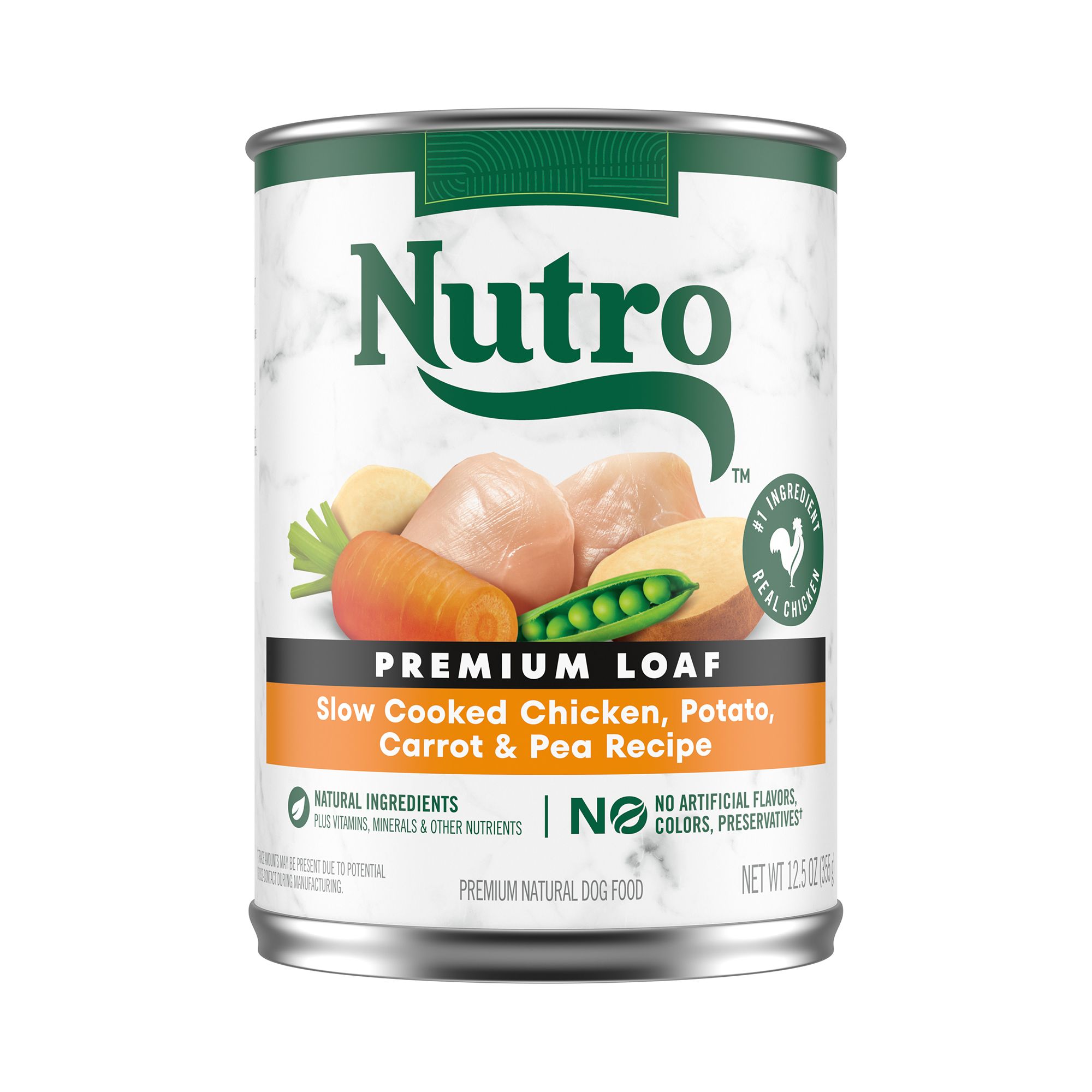 Contains one (1) 12.5 oz. Can of Nutro Natural Choice Premium Loaf Adult Wet Dog Food Beef Recipe.Beef #1 Ingredient: Nutro Premium Loaf Adult Wet Dog Food Beef Recipe is made with real beef as the #1 ingredient.Formulated Without Grains: This wet dog food is formulated without grains.Premium Dog Food: Nutro Premium Loaf Adult Wet Dog Food Recipes are made with natural ingredients plus vitamins, minerals, and other nutrients.USA Facilities: Nutro Premium Loaf Adult Wet Dog Food Beef Recipe is crafted in our USA facilities with the finest ingredients from around the world.Quality Recipe: Nutro Premium Loaf Adult Wet Dog Food Recipes are made with no chicken by–product meal, corn, wheat, or soy, although trace amounts may be present due to potential cross–contact during manufacturing.Partnerships with trusted farmers and suppliers to source high–quality ingredientsSpecies: Dog