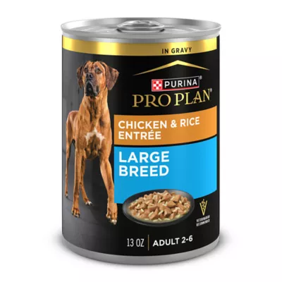 Provide your large dog with specialized nutrition to meet their unique needs with Purina Pro Plan Specialized Adult Large Breed Chicken and Rice Entree Chunks in Gravy adult wet dog food. This large breed adult dog food formula features real chicken for a taste dogs love along with highly digestible rice and no artificial colours, flavours or preservatives. Every high-quality ingredient in our large breed chicken dog food entree is carefully chosen for a specific nutritional or functional purpose, and each serving provides 23 essential vitamins and minerals. The high-protein adult large breed dog food helps promote muscle conditioning when combined with proper exercise. Calcium and phosphorus in our large breed adult dog food formula help maintain their strong bones and teeth. Your large dog gets targeted nutrition in this high protein dog food to help support a healthy immune system, along with omega-6 fatty acids to help support their skin and coat. We formulate Purina Pro Plan adult large breed dog food to be 100 percent complete and balanced for adult dogs over 50 pounds with a high protein level to maintain lean muscle.