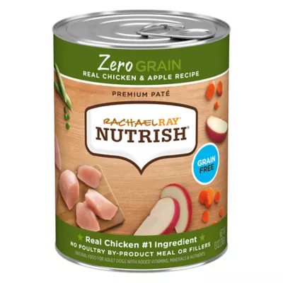 Give your dog a premium mealtime experience in every dish with Rachael Ray Nutrish Zero Grain Real Chicken & Apple Recipe wet dog food. This premium pate dog food is made with real chicken as the number one ingredient and real veggie pieces you can see. Combined with apple and added vitamins and minerals, you get a tasty grain-free meal for adult dogs. It pairs great with your dog's favorite Nutrish dry kibble recipes. Mix it in, top it off or feed as a full meal. There's no poultry by-product meal or fillers in this recipe - no added corn, wheat or soy, either. Just good, wholesome food inspired by the heart of Rachael's kitchen.