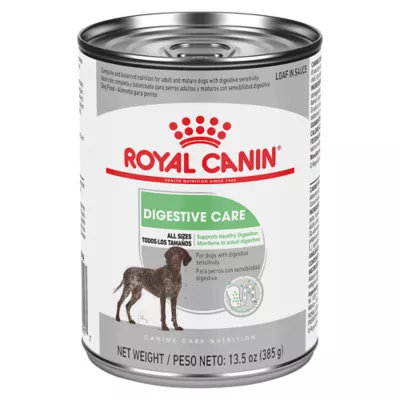 Description: Help support your dog's digestive health with each serving of Royal Canin Digestive Care Loaf in Sauce Wet Dog Food. It provides tailored nutrition to support an adult dog's sensitive stomach. This highly digestible and precisely balanced formula promotes healthy digestion and supports a balanced intestinal flora, helping to contribute to your dog's overall health and wellbeing. Plus, this canned dog food contains protein, essential fatty acids, vitamins and minerals, and can help support digestive sensitivities in dogs, including poor–quality stools. With over 50 years of scientific research and observation, Royal Canin continues to deliver targeted nutrition to feed every pet's magnificence. Find the perfect balance with a dry and wet feeding routine by pairing this delicious wet dog food with Royal Canin Digestive Care Dry Dog Food for a variety in texture.