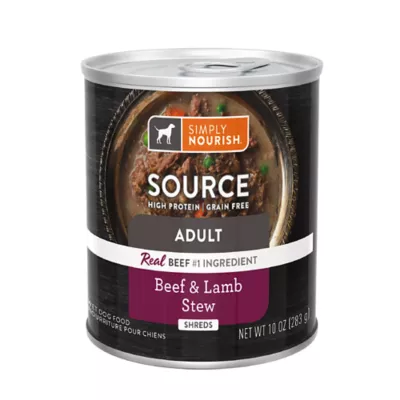 Make meal time delicious and nutritious for your dog by serving Simply Nourish Source Beef & Lamb Stew Adult Dog Food. This delicious wet food features the great taste of real beef, and is made using naturally nutrient-rich ingredients to help meet your adult dog's nutritional needs.
