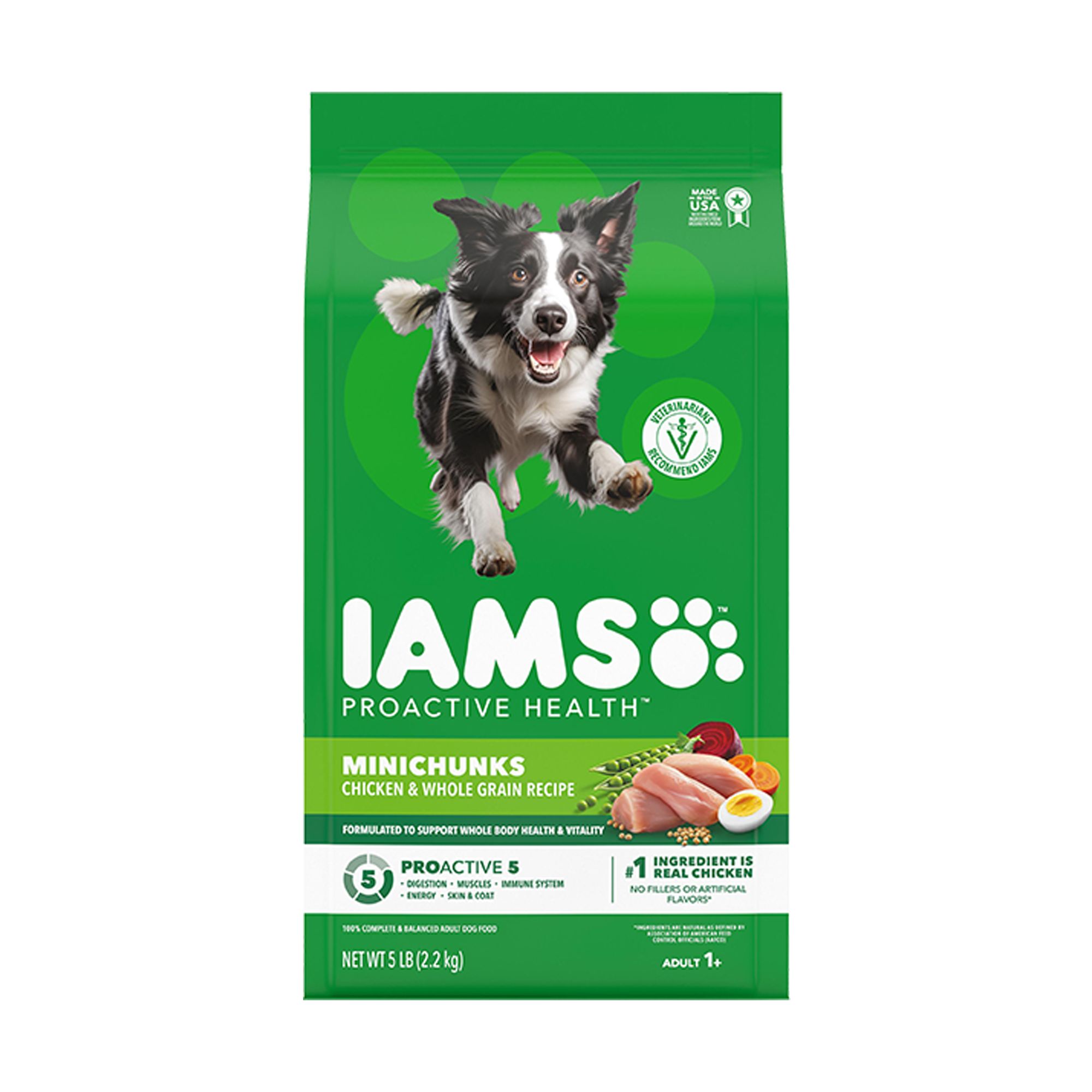 - The Proactive 5 health benefits for IAMS Minichunks are scientifically designed to support five key areas of your dog's health, keeping them full of life, for more life.