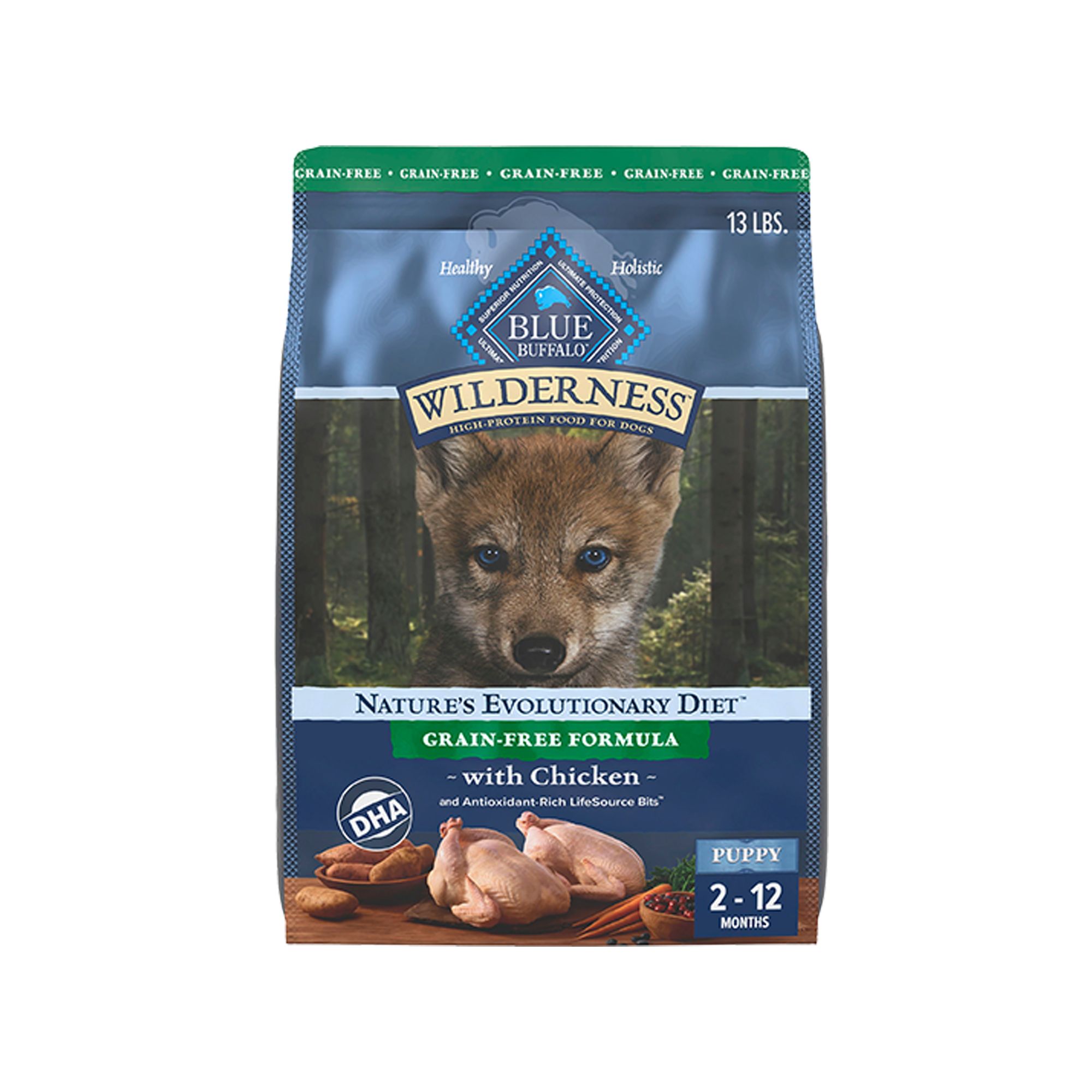 Description: BLUE Wilderness Dry Puppy Food is formulated with 75% protein from animal sources and real salmon as the first ingredient to satisfy your puppy's wild side. Blue Buffalo puppy food also contains real fruits, vegetables, and key nutrients to promote healthy cognitive development and muscle growth. Like all Blue Buffalo dog food recipes, this BLUE Wilderness recipe is formulated without any chicken (or poultry) by–product meals. This natural dry dog food is also free of corn, wheat, soy, artificial flavors, and preservatives. With BLUE Wilderness puppy food, you can feel great knowing your puppy is off to a strong start.