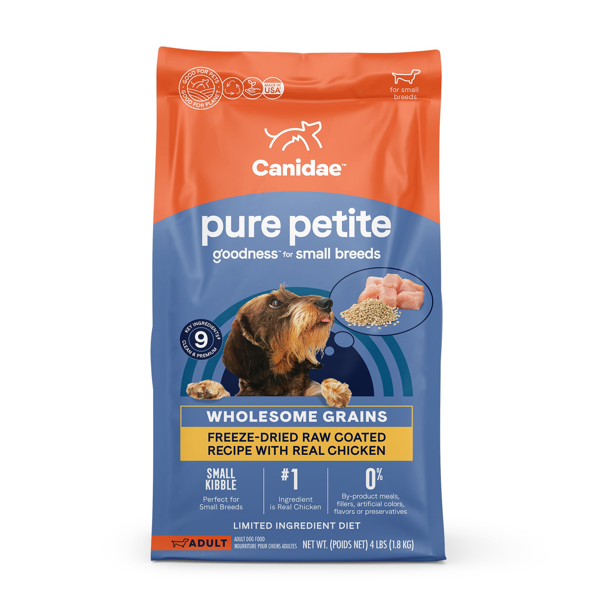 • One 10 lb bag CANIDAE PURE Petite Grain Free Dry Dog Food for Small Breeds with Lamb
