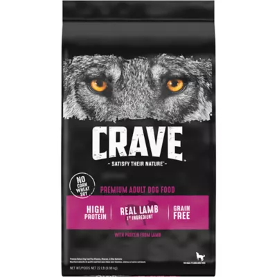 Dogs want the taste and nutrition of a diet that's rich in animal proteins—not soy or grains such as corn or wheat. And the reason is simple. Protein-rich diets provide the nutrients for a lean, healthy body and the energy to chase. Like the diets of their wolf ancestors, CRAVE™ recipes are always crafted with real, high-quality animal protein, no grains, and the full meaty flavor that dogs go wild for.