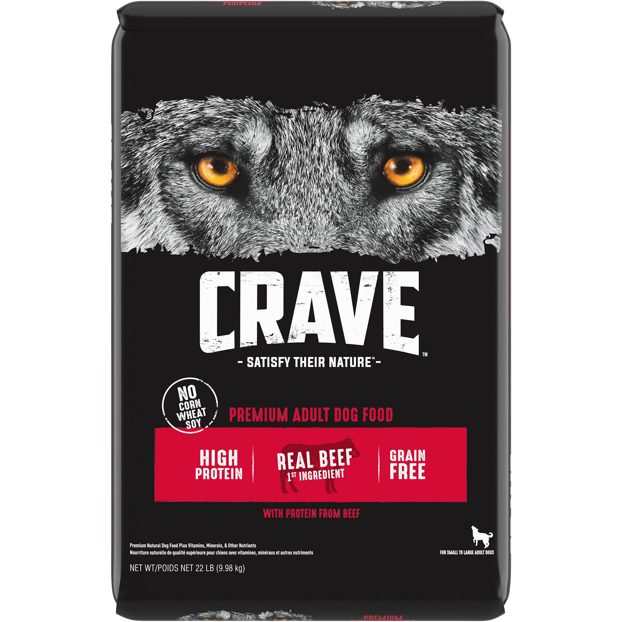 Dogs want the taste and nutrition of a diet that's rich in animal proteins—not soy or grains such as corn or wheat. And the reason is simple. Protein-rich diets provide the nutrients for a lean, healthy body and the energy to chase. Like the diets of their wolf ancestors, CRAVE™ recipes are always crafted with real, high-quality animal protein, no grains, and the full meaty flavor that dogs go wild for.